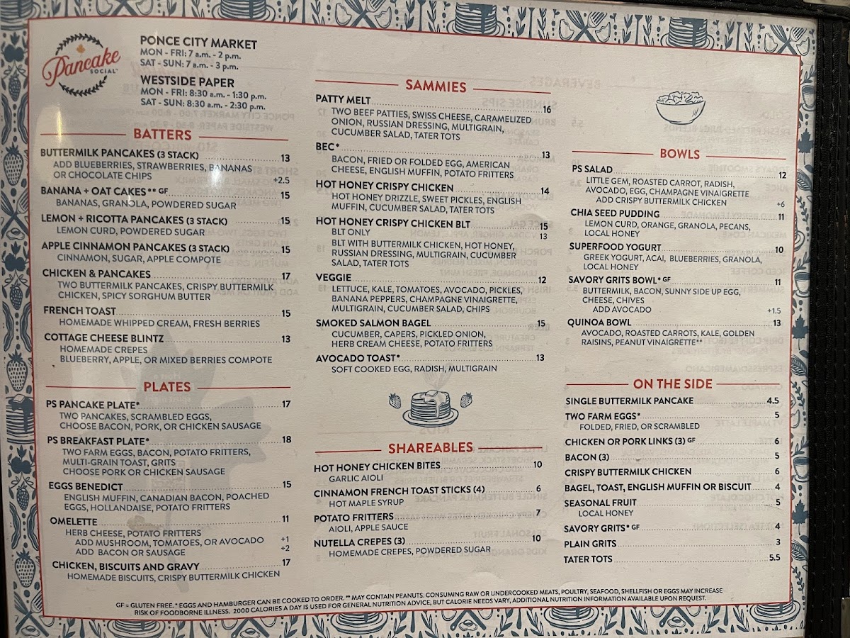 Nestled in the heart of Atlanta, Pancake Social offers a delightful dining experience that embraces the comforting essence of breakfast. The menu is a pancake lover’s paradise, showcasing an array of batters, including classic Buttermilk Pancakes drizzled with Vermont maple syrup, and unique options like Banana Oat Cakes and Lemon Ricotta Pancakes. For those craving more, the Chicken and Waffles dish, featuring crispy buttermilk chicken and spicy sorghum butter, stands out as a crowd favorite.
